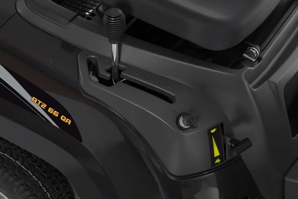 Der AT2 66 QA ist unser kompaktester Rasenmäher und zeichnet sich durch seine hervorragende Wendigkeit aus, mit der Sie jede Menge Spaß beim Fahren haben. Als Antrieb dient ein 224 ccm ST 250 ES-Motor (angetrieben vom STIGA), der eine Leistung von 3,6 kW bei 2450 U/min hat. Das Schneidsystem ist mit einem Einmessermähwerk mit 66 cm Schnittbreite ausgestattet, die zentral in 5 Positionen von 30 bis 64 mm eingestellt werden kann. Dies hilft Ihnen, für jede Situation die richtige Einstellung zu finden. Der AT2 66 QA kann mit dem optionalen Mulch-Kit um eine Mulchfunktion und mit dem optionalen Deflektor um eine Seitenauswurffunktion erweitert werden. Der Rasentraktor wird teilgeliefert. Mulchkit und Seitenauswurf sind nicht im Lieferumfang enthalten.