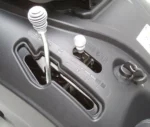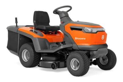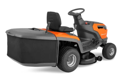 – komfortable Graskorb-Kippfunktion mit Griff, ermöglicht das Entleeren direkt vom Fahrersitz aus;