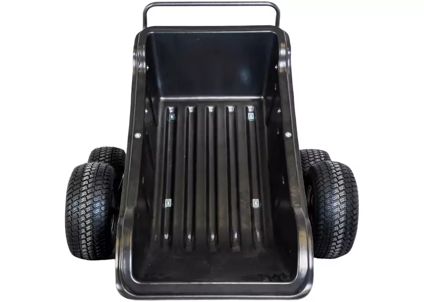 Die Lademulde ist kippbar und eignet sich zum Laden und Transportieren von Rasenmähern und anderen Geräten