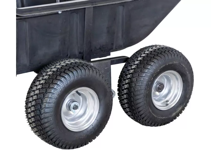 Robustes Metallchassis mit 2 hochwertigen Anhängerreifen der Größe 18″x8,5-8