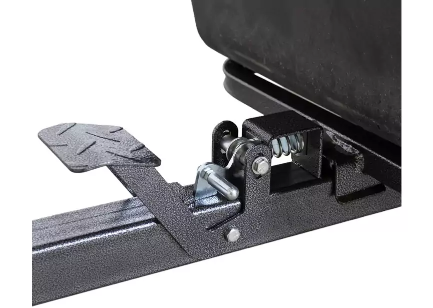Die Deichsel verfügt über ein integriertes Drehgelenk, sodass der Anhänger beim Kippen mühelos um seinen Mittelpunkt nach links und rechts gedreht werden kann. Diese Funktion ist sehr nützlich, um sperrige Lasten zu verteilen oder sie besser zu positionieren, ohne sich bewegen zu müssen.