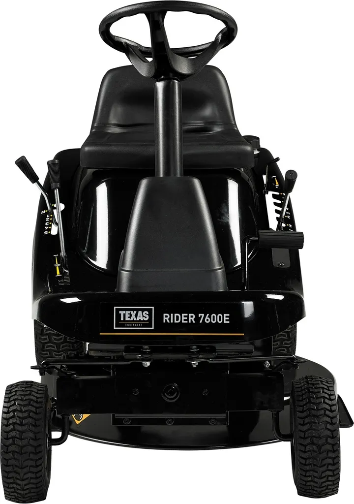 Der Texas Rider 7600E 3in1 verfügt über 5 Gänge (4x vorwärts und 1x rückwärts) und ist mit Kupplung, Bremse, Feststellbremse, Gashebel und mechanischem Messer ausgestattet.