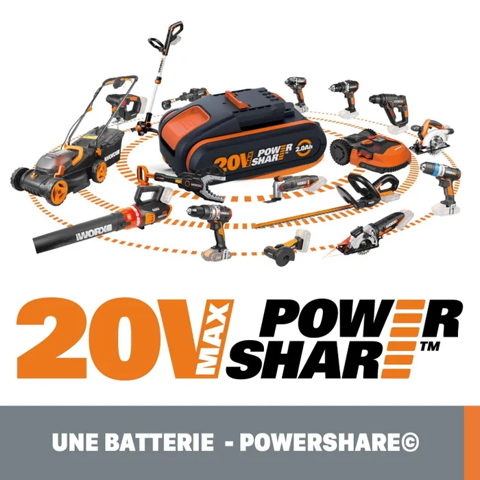 Die App ist viel mehr als nur eine Fernbedienung. Sie ist Ihre Schnittstelle zum Worx-Ökosystem.- Informieren Sie sich, um sich besser anzupassen. Indem Sie Informationen über Ihren Garten bereitstellen, beispielsweise zu Grasart, Bodenart, Bewässerung, Nährstoffen, Abmessungen und Formen, verbessern Sie die Pflege Ihres Rasens. Durch die Gruppierung dieser Informationen erstellt der m500 einen auf Ihren Garten zugeschnittenen Algorithmus zur optimierten Pflege.- Programmieren Sie entsprechend Ihren Anforderungen und stellen Sie die automatischen Programmierparameter Ihres Landroid manuell ein. Wählen Sie Tag, Uhrzeit und Häufigkeit des Mähens aus, aktivieren Sie beispielsweise auch die Funktionen „Betrieb bei Regenwetter“ oder „Igel retten“.- Zonenverwaltung über die Anwendung: Grenzen Sie virtuelle Zonen ab und fordern Sie den Landroid M500 dann auf, eine oder mehrere Zonen zu mähen.- Bleiben Sie wachsam mit dem in der Anwendung verfügbaren Dashboard und den Benachrichtigungen und seien Sie sich immer der Leistung Ihres Landroid bewusst. Intelligentes Navigationssystem: Aiala Landroid M500 ist mit einem intelligenten Managementsystem für komplexe Gärten ausgestattet. Mit dem AIA-System kann Ihr M500-Roboter dank erhöhter Agilität und Effizienz die komplexesten Gärten pflegen. Der M500 ist in der Lage, das komplexeste Gelände zu mähen und kann: – problemlos in engen Passagen mähen: findet immer seinen Weg in engen Passagen, ohne dass ein Führungskabel erforderlich ist.- Schwimmendes Mähdeck: passt sich den natürlichen Unebenheiten Ihres Gartens an, indem es die Höhe des Mähdecks automatisch anpasst.- Randschnitt: Die seitlich am Roboter angebrachte Schneidscheibe mäht möglichst nah am Rand, um möglichst wenig ungemähtes Gras übrig zu lassen.- Bewältigen Sie Steigungen bis zu 35 %: Die AIA-Technologie liefert Echtzeitinformationen zu Versatz, Neigung und Geschwindigkeit, um das Raddrehmoment präzise zu steuern und Steigungen bis zu 35 % hinauf- oder hinunterzufahren. Powershare: Ein Akku für mehr als 75 Werkzeuge. Entscheiden Sie sich für Flexibilität mit Worx Powershare! Dieses austauschbare Batteriesystem gewährleistet Kompatibilität mit allen kabellosen 20-V-Gartengeräten und -produkten von Worx. Ausgestattet mit dem 20 V/2,0 Ah PowerShare-Akku können Sie den Akku Ihres Roboters für die verschiedenen kabellosen Gartengeräte und -produkte von Worx verwenden. Ein Mähroboter, dem Sie vertrauen können. Entwickelt, um Ihren Garten, aber auch seine Umgebung zu pflegen, verfügt der M700 über: – Geringe Geräuschemission: Dank seines niedrigen Geräuschpegels (67 dB) können Sie den Landroid auch nachts und am Wochenende verwenden, ohne die Nachbarschaft zu stören.- Regensensor: Der Roboter stoppt das Mähen sofort, wenn er Regen erkennt, um Schäden an Ihrem Rasen zu vermeiden. – Seitliche Ladestation: Durch das Prinzip der seitlichen Aufladung kann Ihr Roboter die Umgebung der Station bestmöglich pflegen. Darüber hinaus fügt sich die Station mit ihrer Gitterplattform, durch die Gras wachsen kann, in Ihren Garten ein.- Hebesensor: Die Klingen stoppen sofort ihre Arbeit, wenn der Roboter vom Boden abgehoben wird – Diebstahlschutz: Der Roboter ist mit einem Sperrsystem mit PIN-Code und einem Alarm im Falle eines Diebstahls ausgestattet Passen Sie Ihren Landroid an Die Anpassung macht Ihren Landroid einzigartig und ermöglicht es Ihnen, ihn dank vier modularer Optionen an Ihre individuellen Bedürfnisse anzupassen